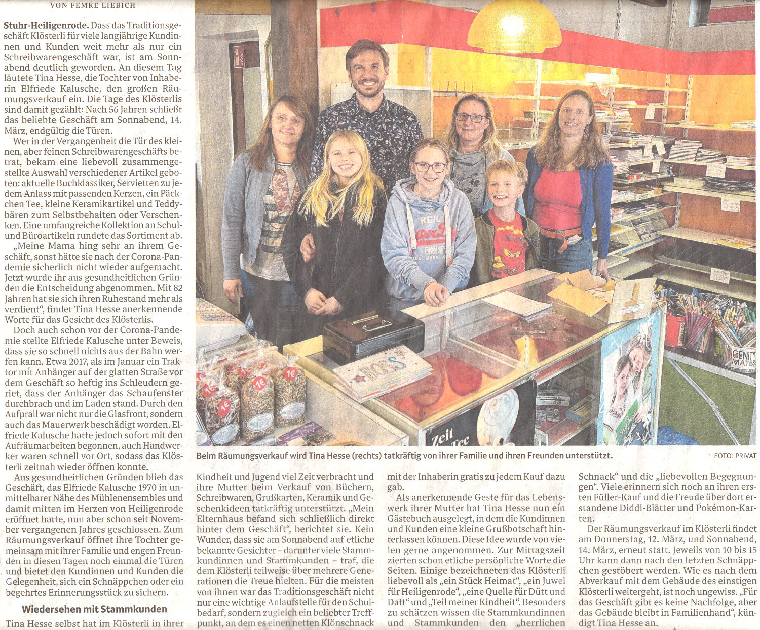 Das Schreibwarengeschäft Klösterli schließt nach 56 Jahren, der Ausverkauf des Traditionsgeschäft läuft noch bis zum 14. März. (Quelle Tageszeitungen)