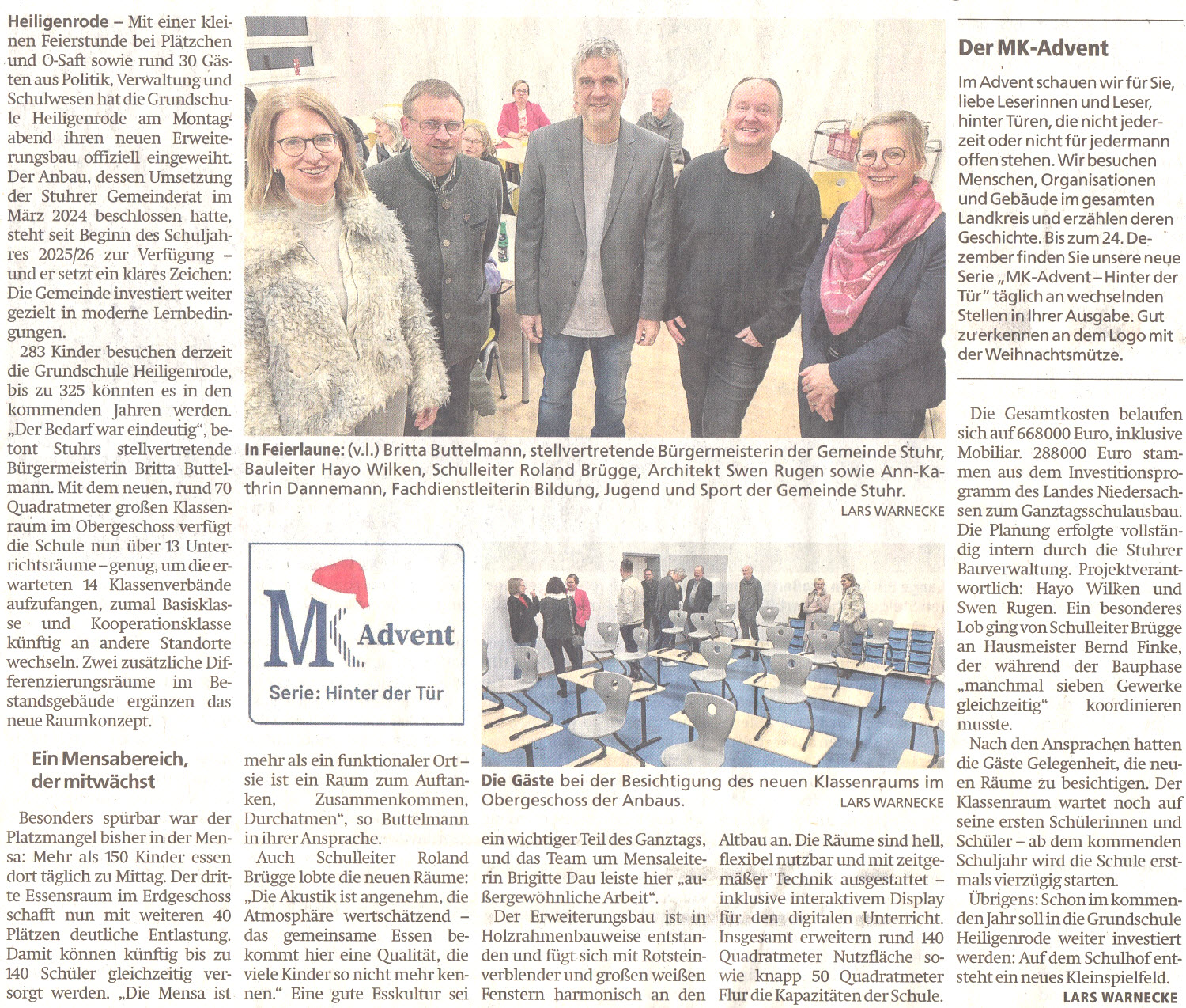 Mehr Platz, bessere Chancen, Grundschule Heiligenrode feiert Einweihung ihres Erweiterungsbaus. (Quelle Tageszeitungen)